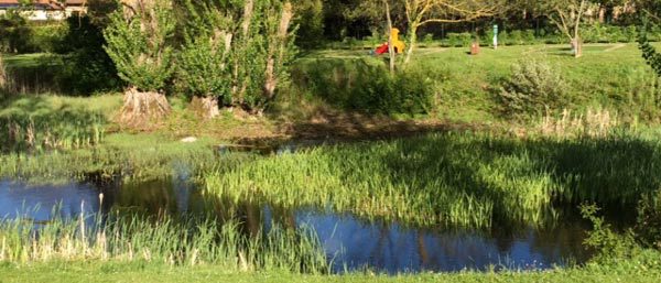 Cette mare héberge un grand nombre d’amphibiens tels que tritons marbrés, tritons palmés et grenouilles vertes; sans oublier notre couple de canards col vert qui, tous les ans, vient élire domicile pour donner naissance à sa ribambelle de canetons. Le fait que cette mare s’assèche l’été est profitable à toute cette faune qui profite de la berge pour se loger. Nous vous invitons à venir flâner autour de la mare et prendre connaissance du panneau explicatif sur sa vie. Au même titre que la forêt communale nous avons beaucoup de chance d’avoir ce petit écrin de verdure en plein centre du village, prenons en soin…
