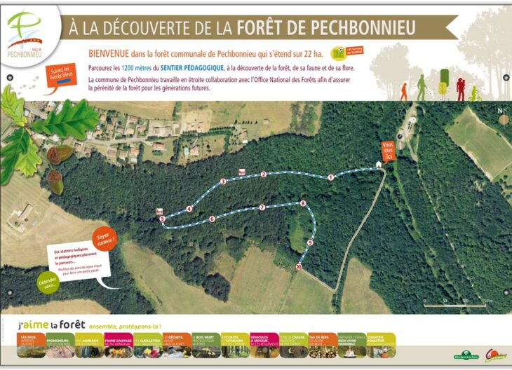 - En 2018, suite à la détermination d’une étudiante qui souhaitait s’investir sur son village et au soutien technique de notre réfèrent ONF, nous avons imaginé et étudié la mise en place d’un parcours pédagogique. Vous pourrez découvrir l’itinéraire sur 1,2 km via le plan situé à l’entrée de la forêt.