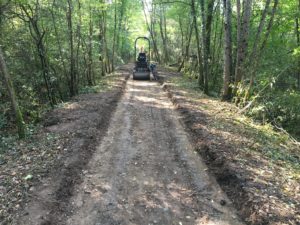 Cela nous a également permis le contournement d’une parcelle privée. La seconde passerelle plus petite (4 m x 0,90 m) se trouve sur le chemin de « L’Homme mort » et traverse le même ruisseau. Vous pouvez vous rendre dans la forêt par l’entrée principale chemin de Roche, par le chemin du Moureau et par les Coudeyrous sans avoir à rebrousser chemin.